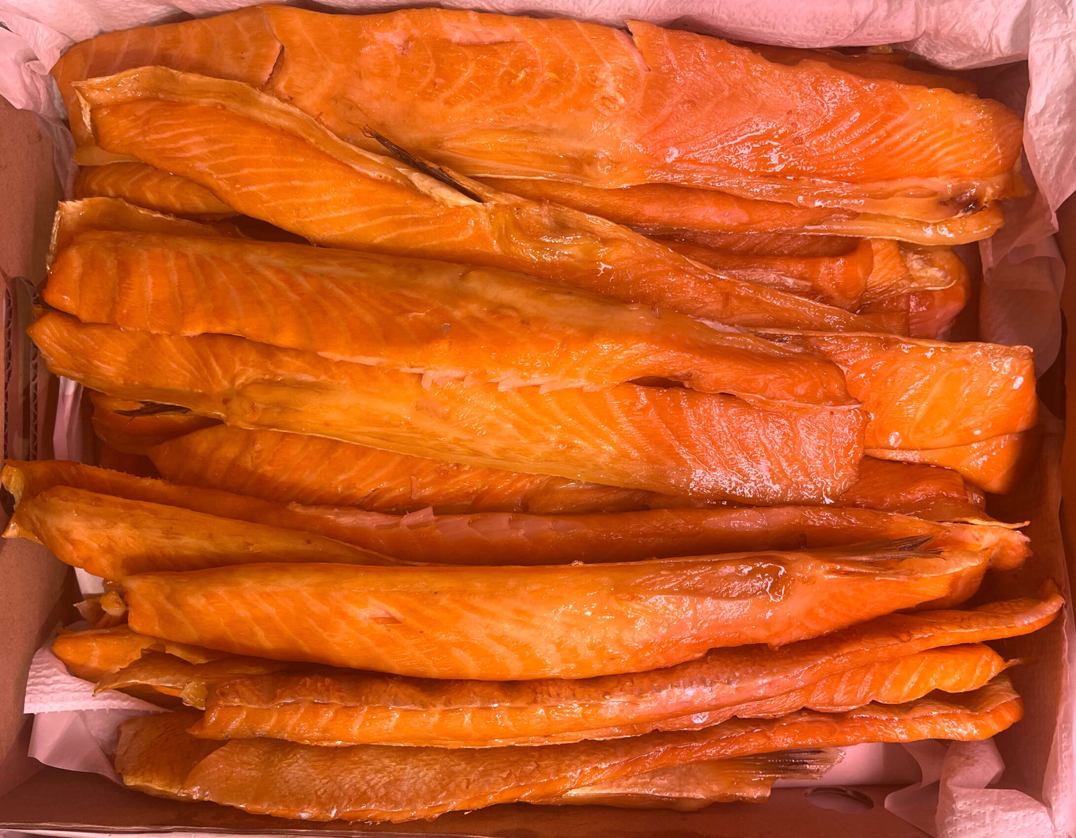 Brzuszki z łososia to najbardziej soczysta, tłuściutka i aromatyczna część ryby, ceniona za intensywny smak i delikatną strukturę. Idealne do zjedzenia z pieczywem, do makaronu lub risotto.