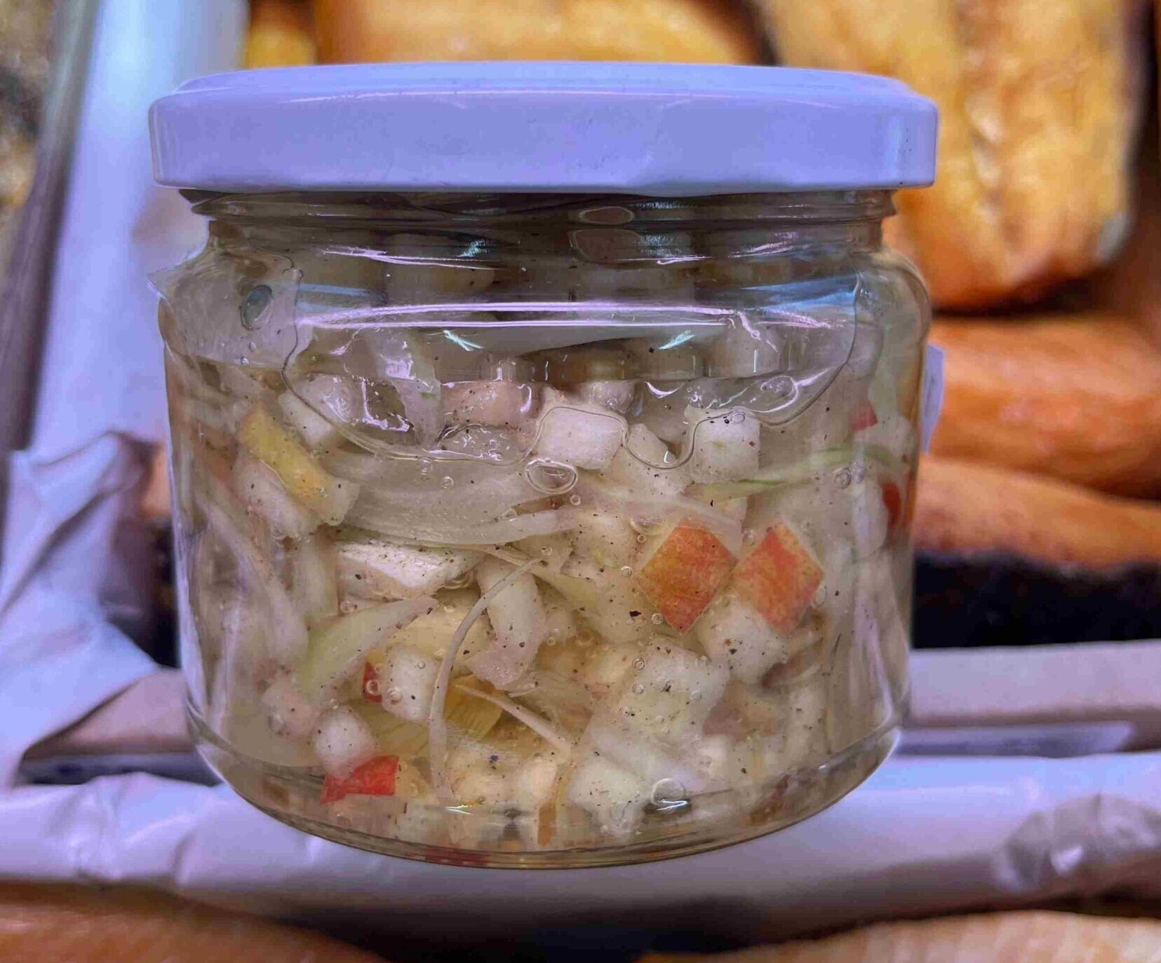 Śledź matias z cebulą, papryką i ogórkiem konserwowym to wyrazista, lekko kwaskowa kompozycja inspirowana klasycznymi smakami. Soczysty, chrupiący w dodatkach i idealnie zbalansowany – świetny jako gotowa przystawka lub do świeżego pieczywa. Śledzie zapakowane hermetycznie w ekologicznym słoiku.